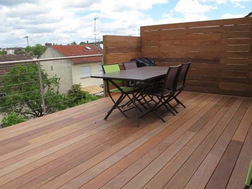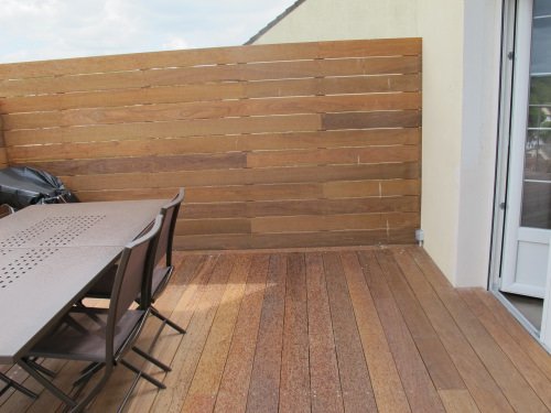 Terrasse sur Pilotis, vue de la surface terminée avec le brise vue.