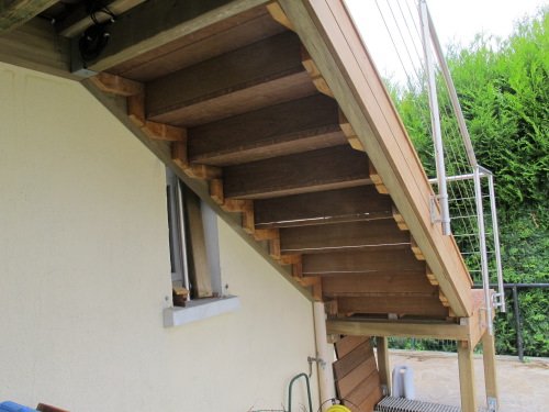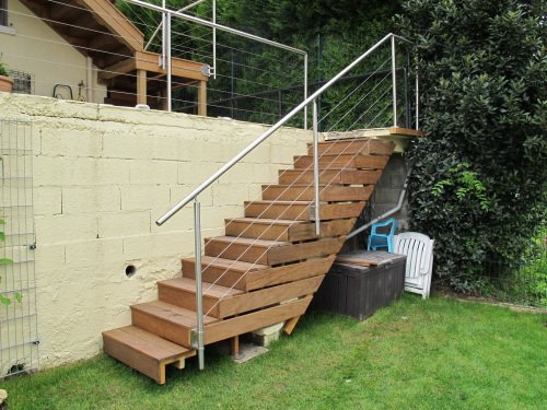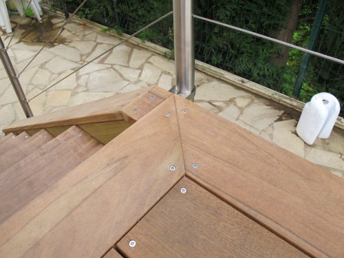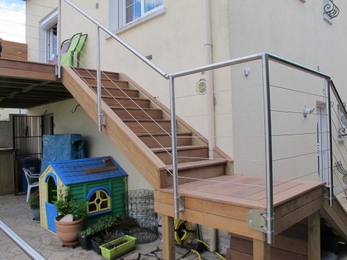 Grande Terrasse sur pilotis avec garde-corps inox et escalier 1/4 tournant