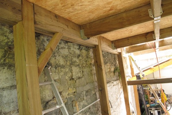 Le mur mitoyen n’était pas fiable. Nous ne nous sommes pas appuyé dessus. Nous avons installé des poteaux, comme si le mur n’existait pas.