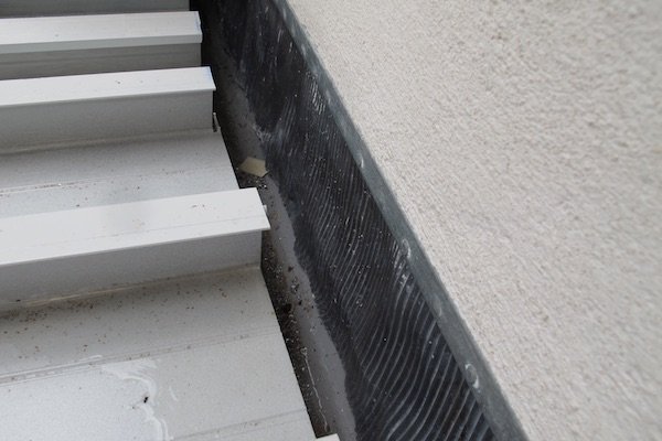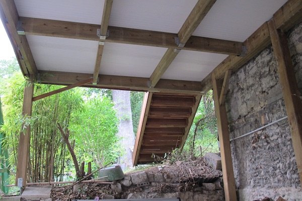 L’escalier permettant de descendre au jardin depuis notre terrasse étanche.