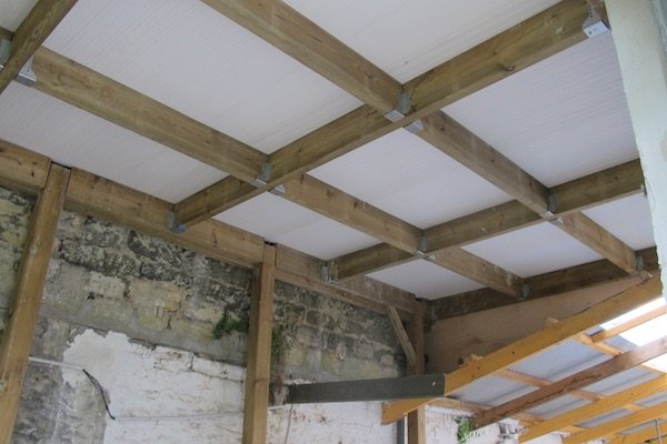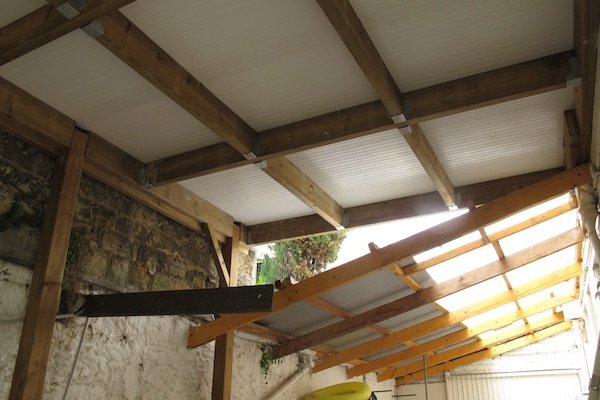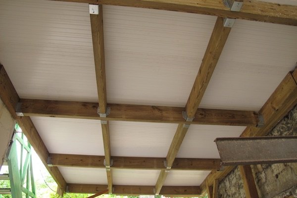 Vue de la sous-face des profilés Metadeck, thermolaqués en usine, inaltérables, à vie.