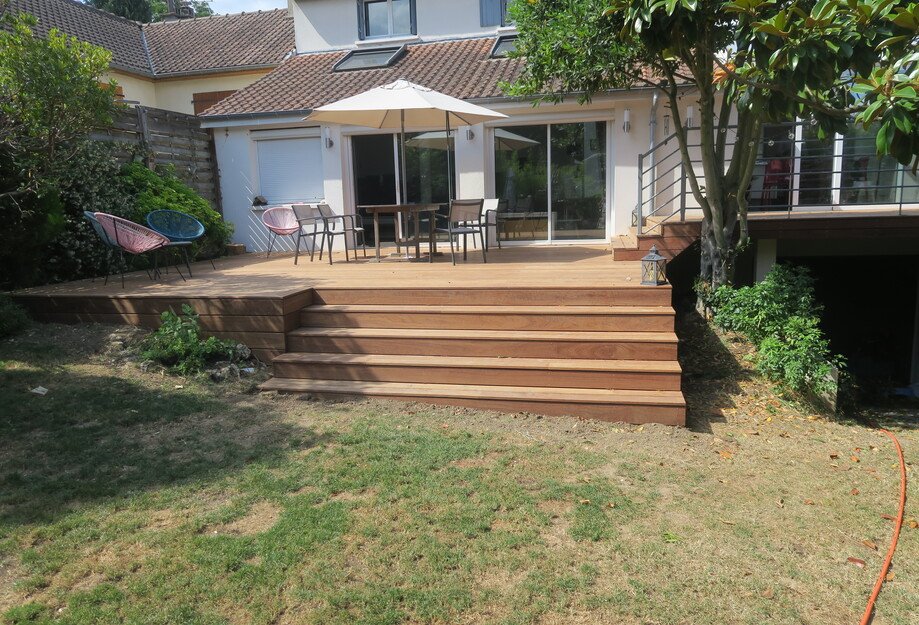 Magnifique terrasse en cumaru en hauteur pour maison de ville