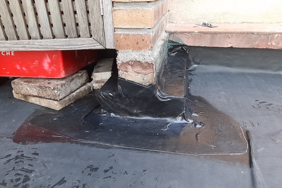 Voici un point singulier de traitement d’étanchéité avec le flashing pour assurer une parfaite étanchéité à la terrasse.