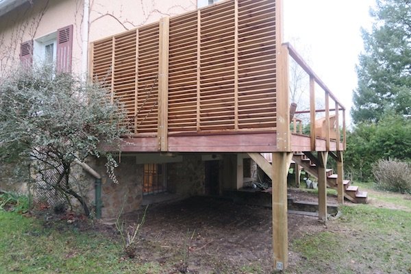 Grande terrasse en hauteur en bois exotique