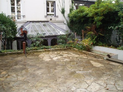 A Boulogne Billancourt, (Hauts de Seine), cette charmante maison de ville possède une magnifique véranda en rez de jardin, et une grande terrasse de 50 m2 en pierre de Bavière.