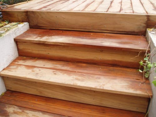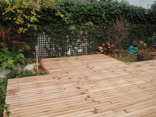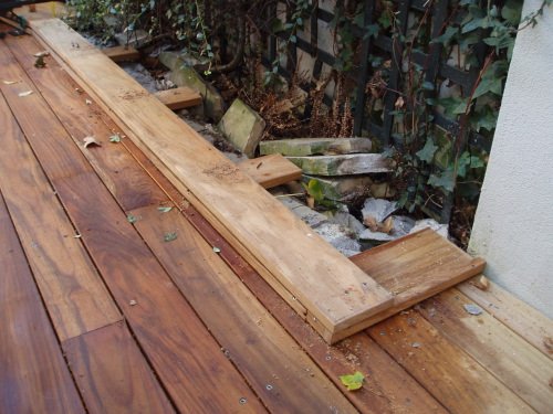 Extension de la terrasse bois au dessus de l’ancien escalier béton.