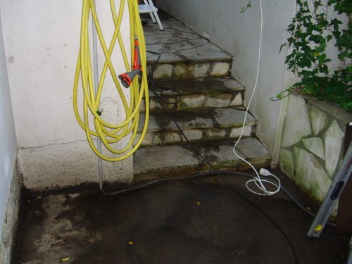 les contre-marches.Il venait juste de pleuvoir. Le bois était encore un peu humide.
