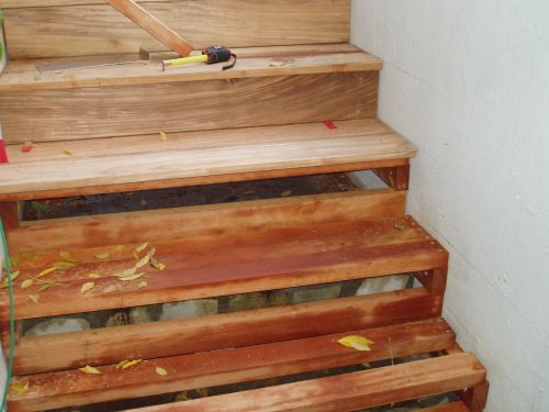 Nous avons donc recouvert l’escalier béton, d’un nouvel escalier en Teck.