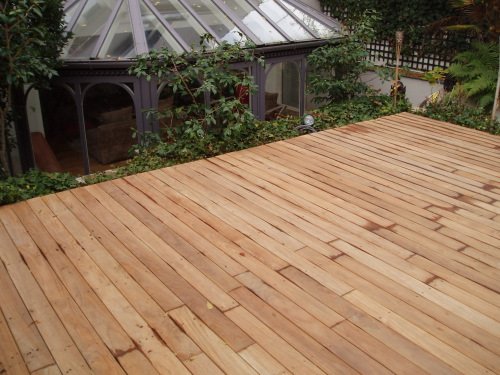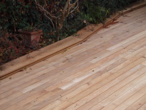 avec des lames de Teck de 14 cm de large. Le charme du Teck est indéniable.