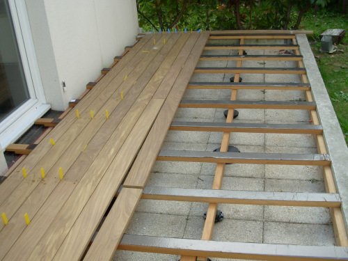 Nous avons parfaitement aligné les lames de terrasse entre les deux