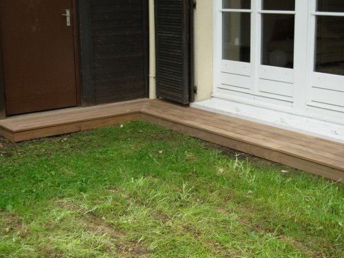 Petite terrasse devant la maison pour permettre de sortir de la maison les pieds au sec.
