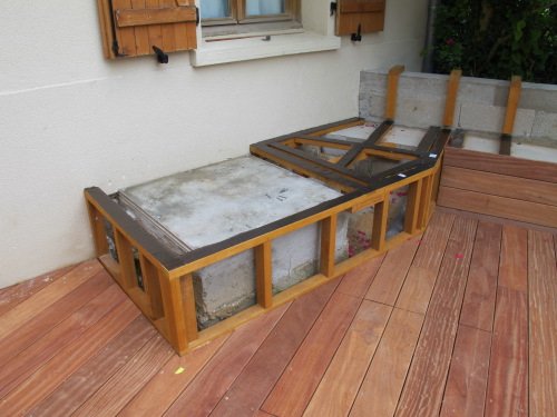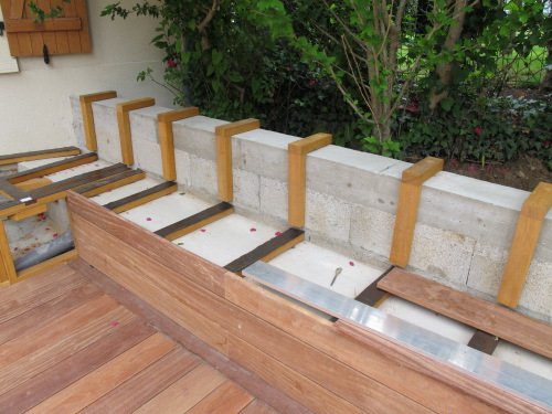 Nous coffrons ce banc, avec les mêmes lames de terrasse.