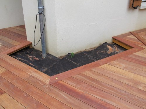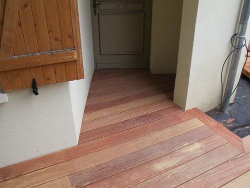 La loggia devant la porte d’entrée est compliquée. Les lames de terrasse