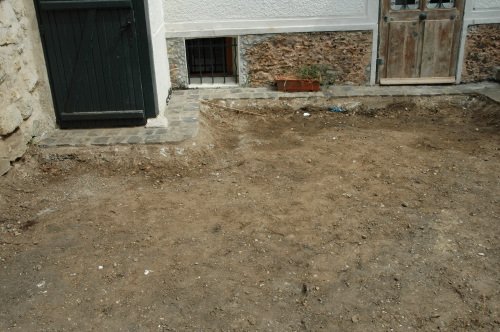 La porte de la cave s’ouvre sur l’extérieur et les pavés nous