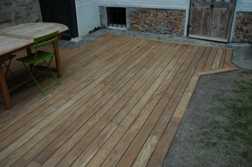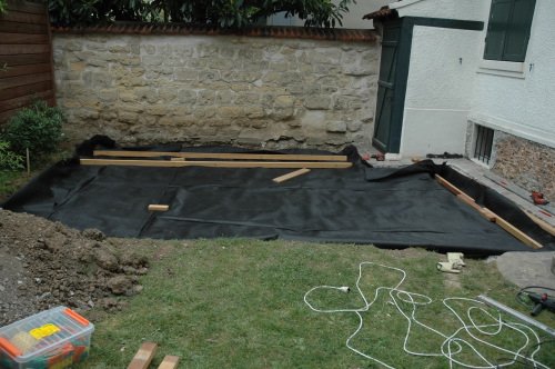 Nous décaissons le sol naturel sur 20 cm et posons le géotextile