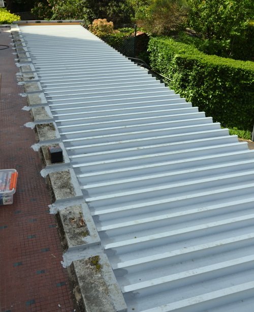 Vissage des lames sur les profilés avec des vis autoforantes inox.