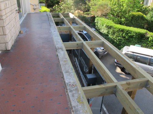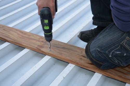 Nous fixons ensuite les profilés MetaDeck sur la structure en bois.