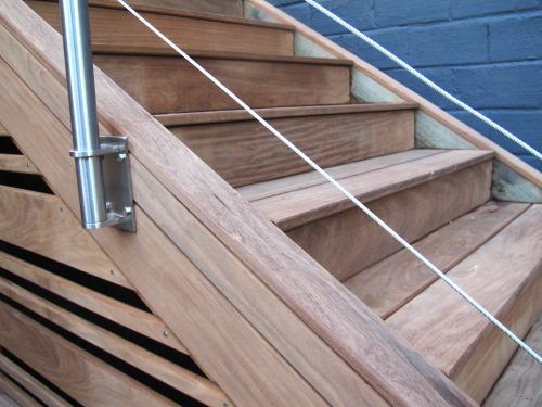 Détail des finition sur les limons de l’escalier (lames en Cumaru sur le dessus et les côtés)