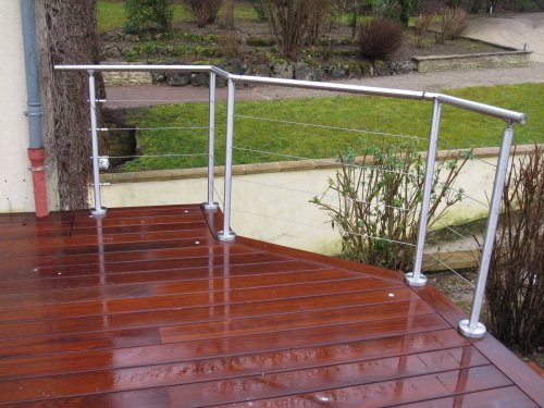 Garde-corps en inox sur une grande terrasse sur pilotis