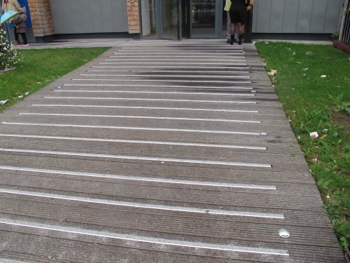 Des glissades ayant été constatées, nous avons posé des bandes antidérapantes
