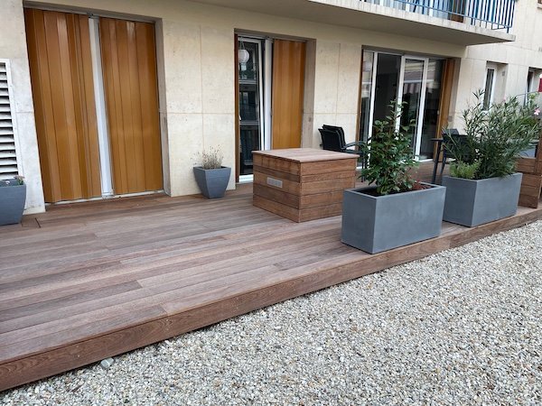 Magnifique terrasse en bois, pour un grand balcon en centre-ville