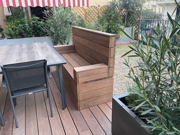 Pour finir, nous avons même réalisé du mobilier de jardin en bois exotique, comme ces assises.