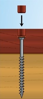 - lors de la pose d’une terrasse avec vis apparentes, pour boucher les trous réalisés par erreur ou masquer les défauts de belles lames (trous de vers, petits noeuds…)
