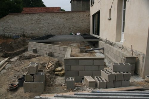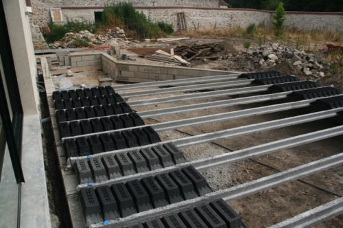 Photo 1 : La construction d’une terrasse en béton de manière traditionnelle est un travail considérable : décaissement, coulage d’une semelle de fondation