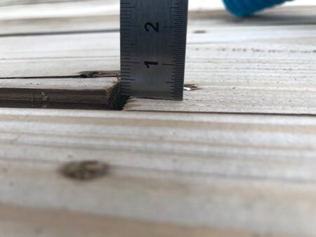 Les espacements entre les vis et les lames ne sont pas respectés. Encore une fois, c’est un travail fait à la va-vite avec des bois de mauvaise qualité et un client super déçu. Quand le client nous demande quelles solutions nous pouvons lui proposer pour récupérer la situation ; nous sommes contraints de lui dire qu’il n’y a malheureusement qu’une solution.
