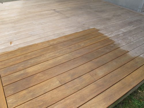 Voici l’aspect, après application du dégriseur spécial terrasse bois, et séchage.