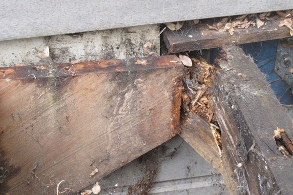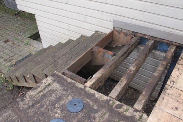 Terrasse pourrie à cause de champignons