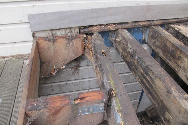 Mais finalement, on voit la résistance exceptionnelle du bois, puisque malgré l’état de dégradation avancé par chance pour les propriétaires, la terrasse a continué de tenir et il n’y a pas eu d’accident.