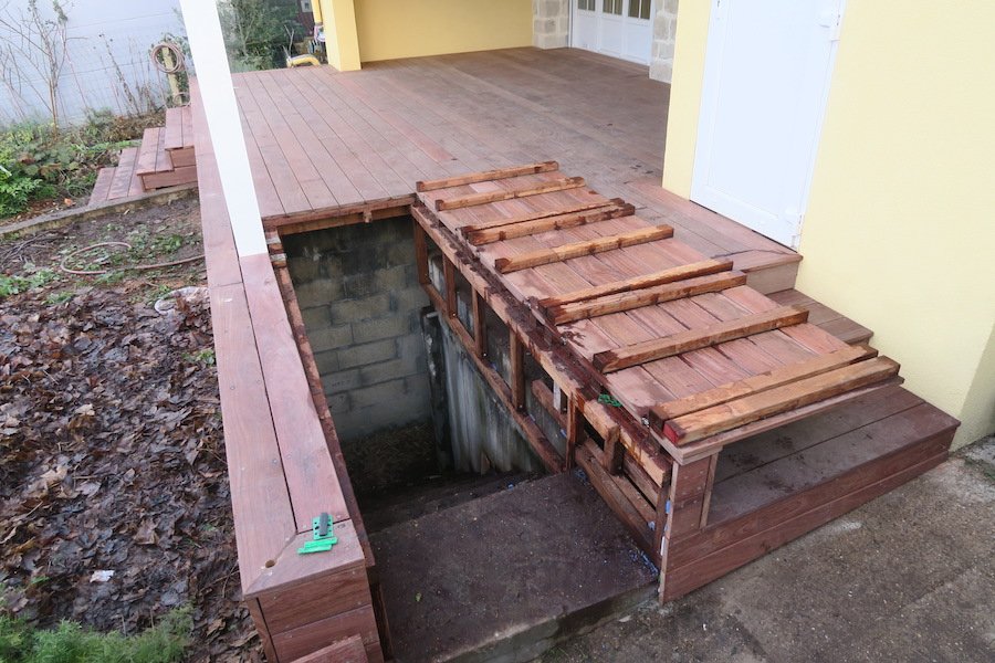 Nous avons commencé par construire une belle terrasse en bois exotique, en cumaru.