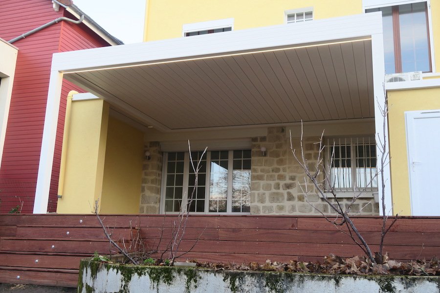 Sur cette belle terrasse nous avons ensuite construit notre pergola bioclimatique qui assure un confort, aussi bien quand le temps est à la pluie qu’en temps de canicule pour apporter un moment de fraîcheur.