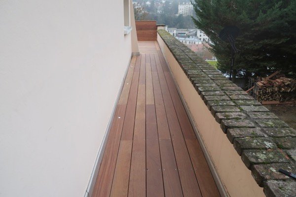 Réalisation d’une grande terrasse bois sur un large balcon filant