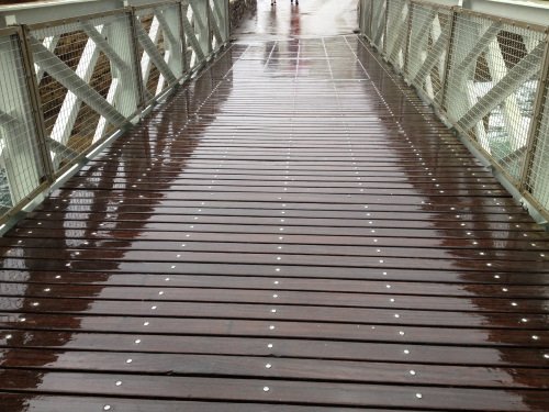 Comme on le voit, même sous la pluie, il n’y a aucun problème de glissance : les lames lisses évacuent l’eau de pluie rapidement.
