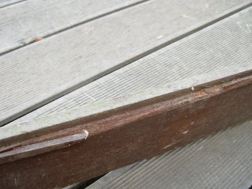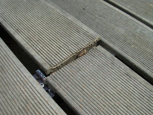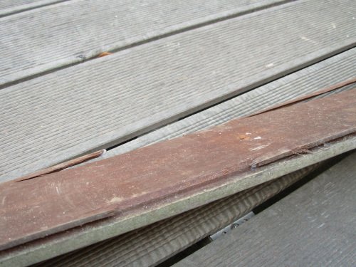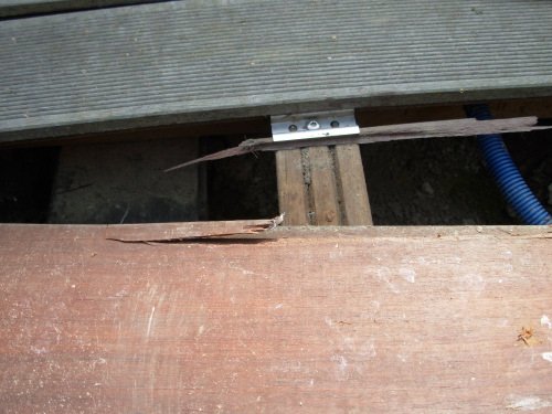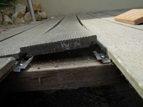 Cette terrasse a été posée par un particulier. Elle cumule quasiment toutes les erreurs possible :
