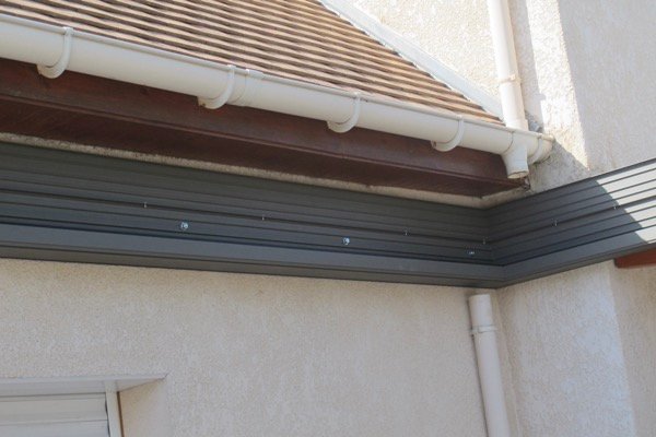 Voici la sous-face de la pergola bioclimatique avec les lames en position fermées, nous avons un joli plafond en aluminium thermolaqué, inaltérable à vie et 100% étanche.