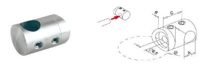 Support extrémité gauche pour fixation directe du tube inox de 12 mm
