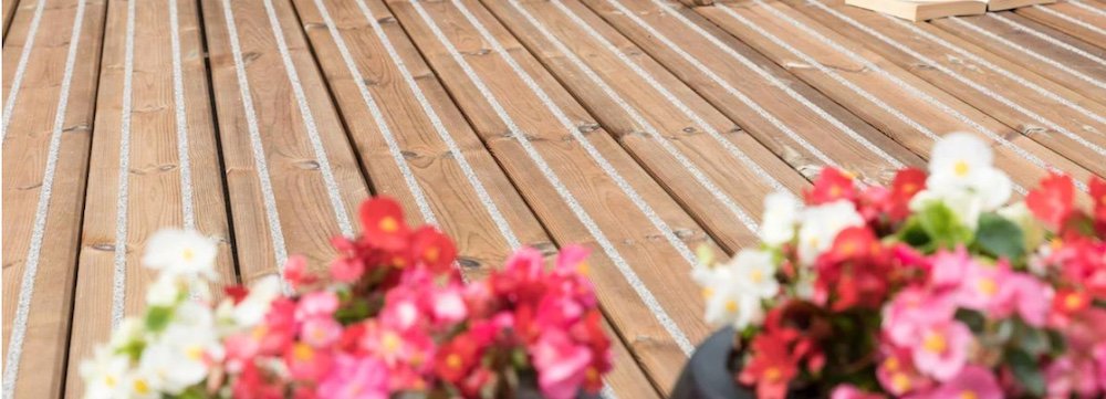 Les lames de terrasse antidérapantes Gripsure sont des lames de terrasse en bois naturel comprenant un usinage permettant d’y insérer une bande antidérapante. Les lames de terrasse sont donc esthétiques et sécurisantes. Les lames de terrasse sont durables, résistantes et vous garantiront de belles années sur une terrasse en bois sans risque de glisser.