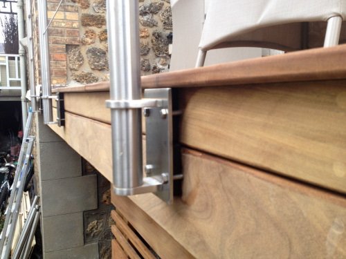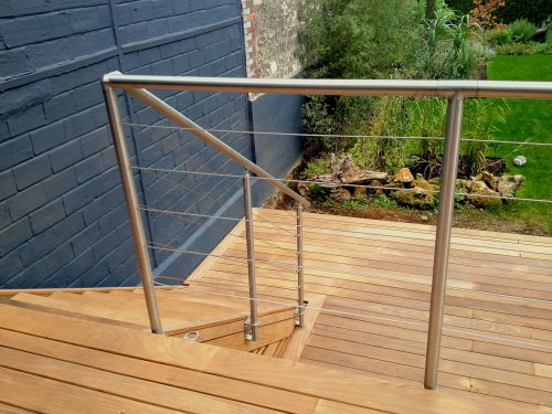 Garde-corps (rambarde) tout inox, en pose à l’anglaise (sur le côté de la terrasse)
