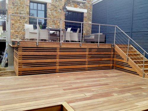 GARDE-CORPS INOX sur une belle terrasse sur Pilotis, en bois exotique (Assamela)