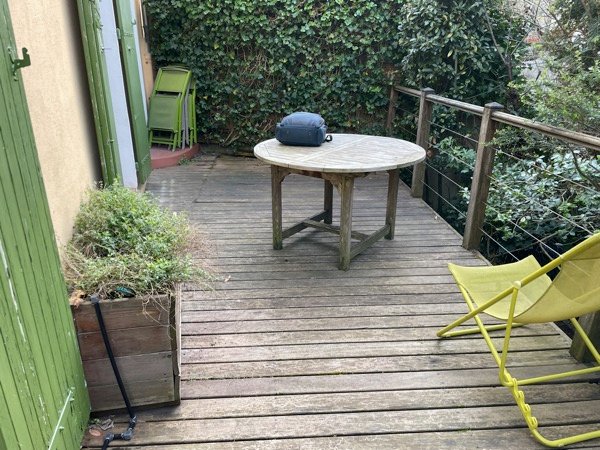 Voici l’état de la terrasse à notre arrivée. Toutes les lames de terrasse étaient pourries ou sur le point de céder.