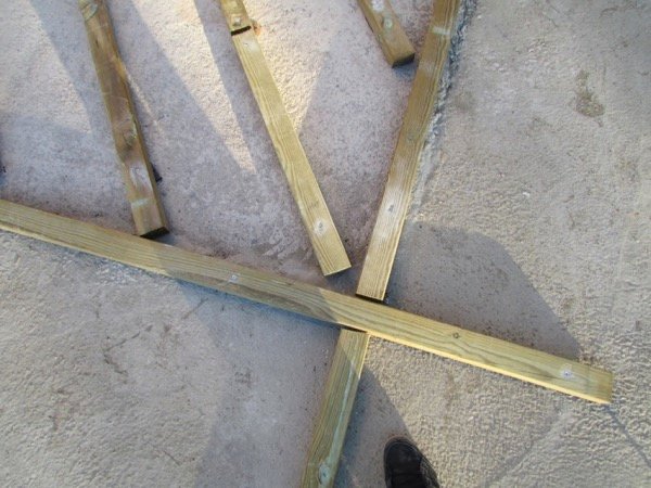 Sur cette dernière photo on retrouve notre finition approximative, que ce soit sur l’espacement des lames, leurs ralliements, la coupe centrale, bref c’est une terrasse en bois qui non seulement ne va pas durer longtemps, mais a toutes les raisons de rendre son propriétaire neurasthénique.