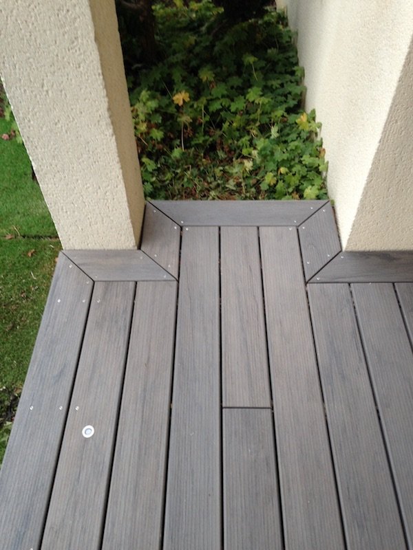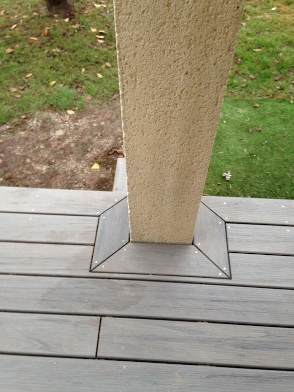 Photo 4 : belle finition autour d’un poteau béton avec les lames en bois composite