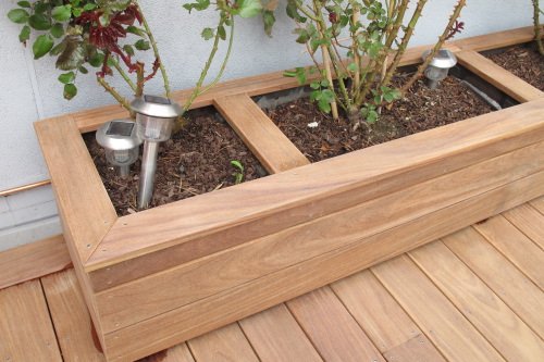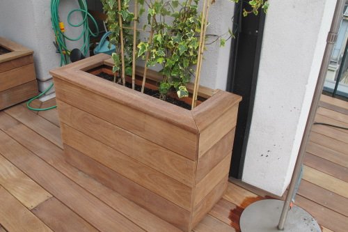 Coffrage de vieilles jardinières avec lames de terrasse en Cumaru
