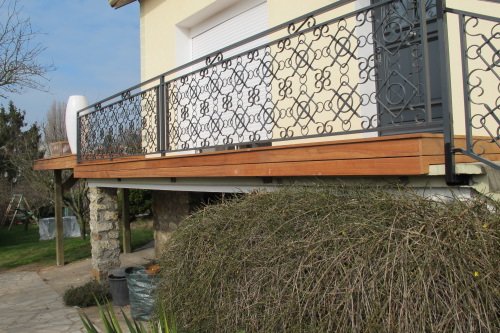 Lames de rive en Afzélia pour cacher le board d’un balcon béton
