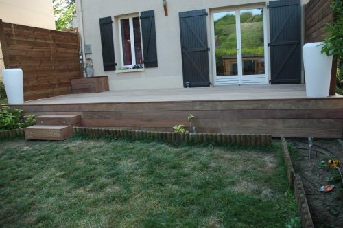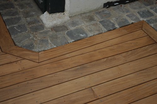 Belles coupes et finitions sur une terrasse en Teck, pose vissée