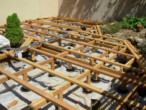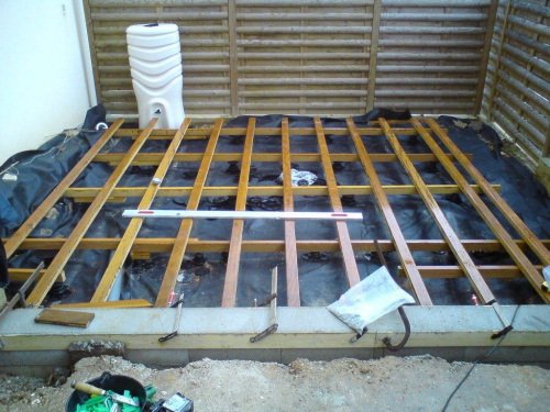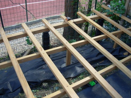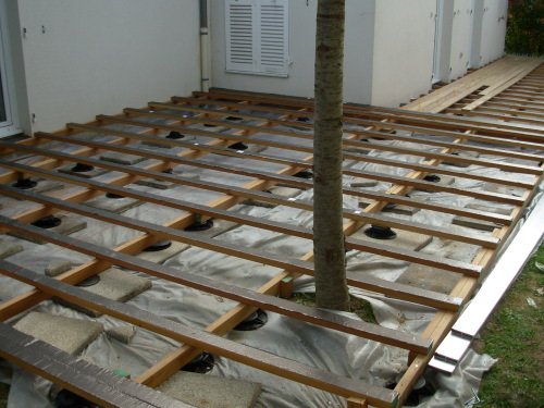 Structure de terrasse en afrormosia sur dalles gravillonnées