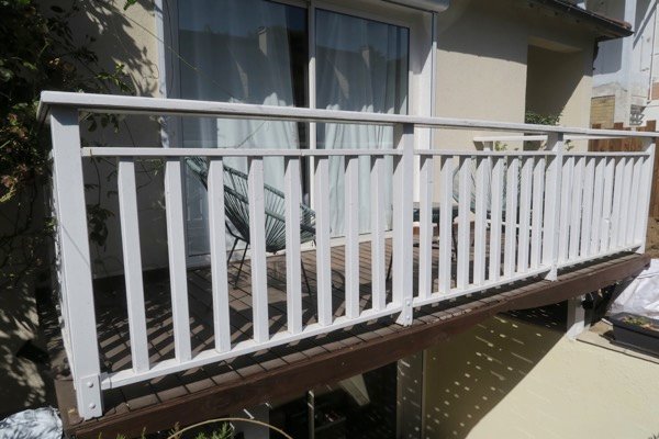 En apparence, la terrasse semble sympa avec un garde-corps en bois, tout à l’air d’être en ordre.